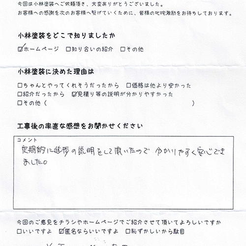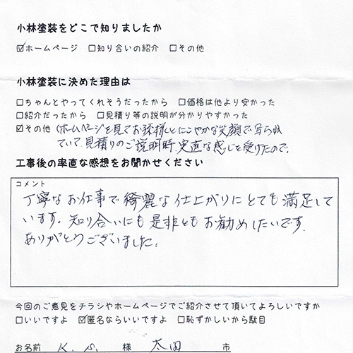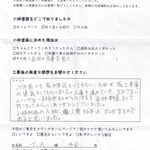 お客様の声 | 太田市の外壁塗装は小林塗装 ホームお客様の声 お客様の声一覧 2025-12-26太田市で施工のS様からのアンケート2025-12-26太田市で施工のT様からのアンケート2025-12-26太田市で施工のM様からのアンケート2025-09-08太田市で施工のA様からのアンケート2025-07-08太田市で施工のS様からのアンケート2025-05-04足利市で施工のA様からのアンケート2025-02-18太田市で施工のG様からのアンケート2024-11-09太田市で施工のN様からのアンケート2024-08-19太田市で施工のS様からのアンケート2024-08-19太田市で施工のF様からのアンケート2023-12-12太田市で施工のOK様からのアンケート2023-10-25太田市で施工のM様からのアンケート 123